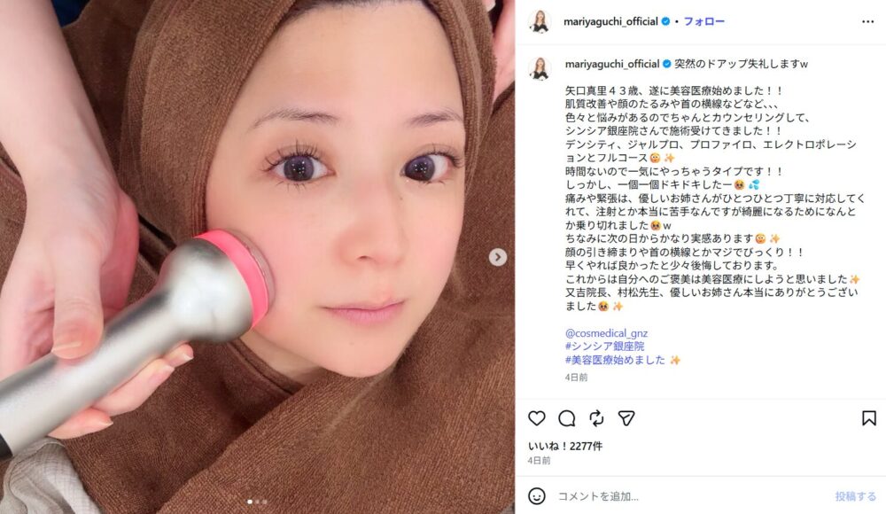 2026年4月20日のInstagramで「美容医療を始めました!」と投稿されています。